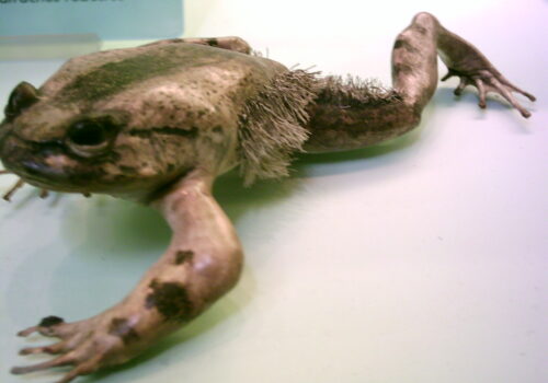 Discover the fascinating hairy frog (Trichobatrachus robustus), famed for its unique "hairy" skin and extraordinary defense tactic of breaking its own bones!